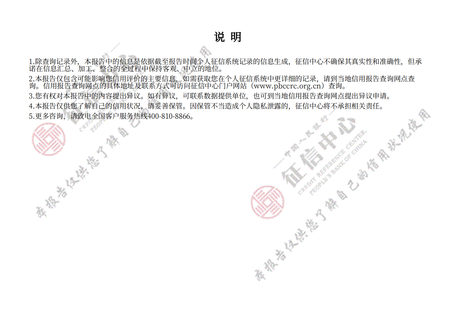 人民银行详细版征信记录,包括网贷、房贷、车贷、信用卡等